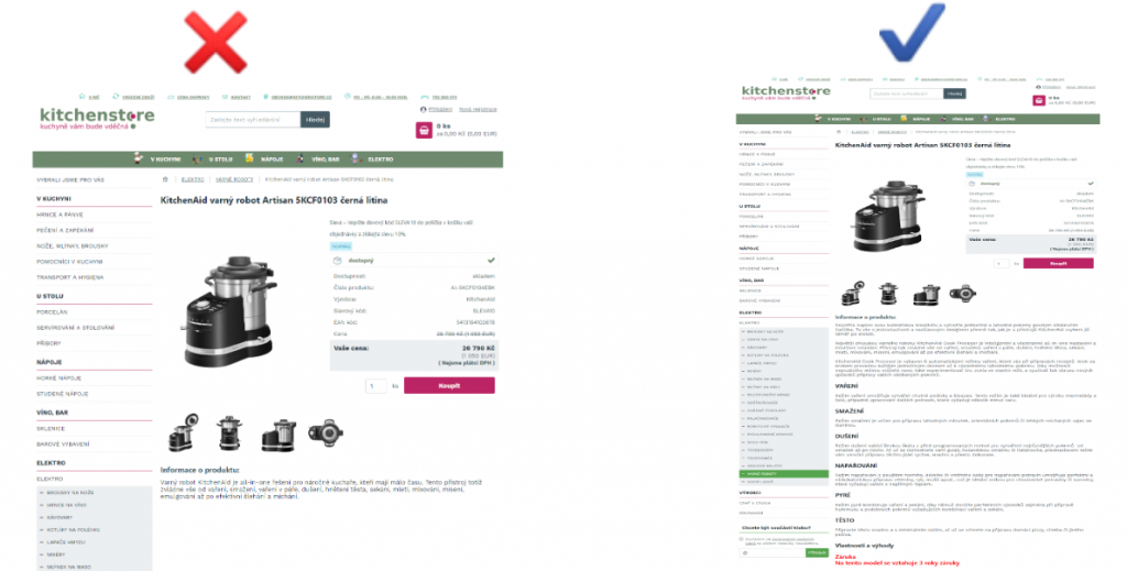 Pro zlepšení celého dojmu webu bylo potřeba zlepšit popis u jednotlivých produktů. Celá naše strategie pro B2C se nesla v duchu toho, že nákup má být pro zákazníka zážitkem, tak jsme se snažili mu jej ještě více okořenit a dodat mu další přidanou hodnotu k nákupu.
